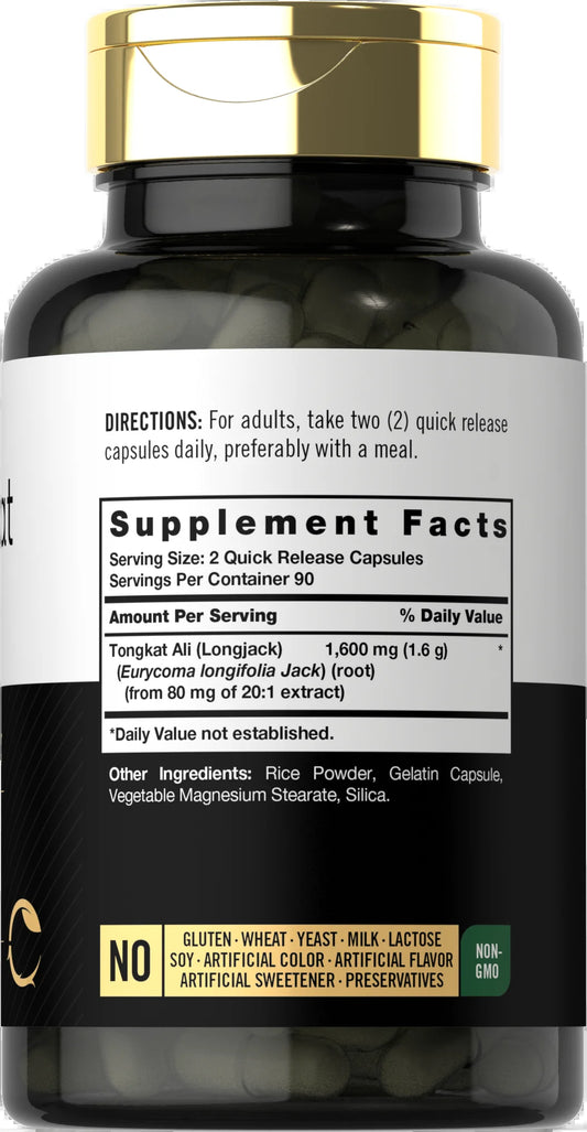 Tongkat Ali 1600Mg | 180 Capsules | Non-Gmo and Gluten Free Supplement | by