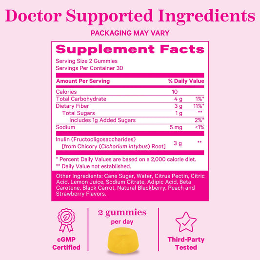 Fiber Gummies: Prebiotic Inulin for Digestive Support, 60 Gummies, Peach Berry Flavor
